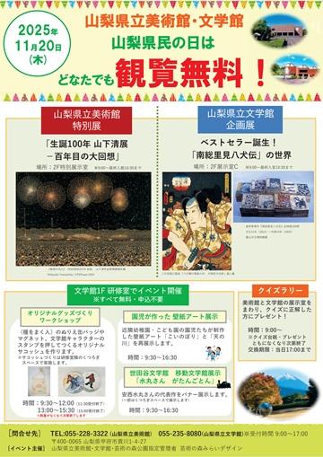 11月20日は山梨県民の日。美術館と文学館のすべての展示を、どなたでも無料でご観覧いただけます。